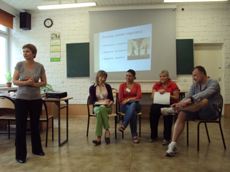 28 maja 2011 roku, już po raz kolejny w tym roku akademickim, studenci, słuchacze i absolwenci WSP TWP Wydziału Zamiejscowego w Lublinie spotkali się na szkoleniu zorganizowanym w ramach projektu Nowoczesny Pedagog. Tym razem tematyka spotkania koncentrowała się wokół zagadnienia negocjacji. Uczestnicy warsztatów, przy fachowym wsparciu psychologa dr Anny Tychmanowicz, poznawali zasady, warunki i style skutecznych negocjacji, rozwijali zasoby osobiste niezbędne w negocjacjach oraz próbowali swoich sił stosując w praktyce wybrane strategie i techniki negocjacyjne.